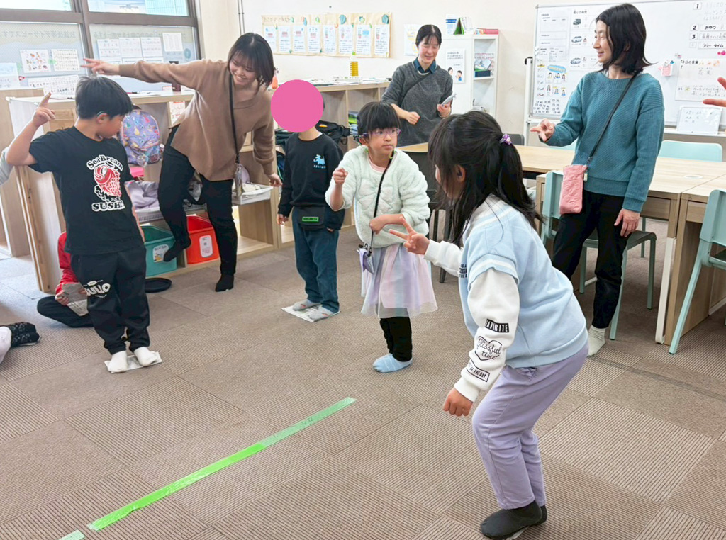 フリータイムでは、ダンスや追いかけっこ、フリスビーなど、体を動かす遊びを中心に、普段はなかなか一緒に遊べないお友達とも元気に過ごしています。