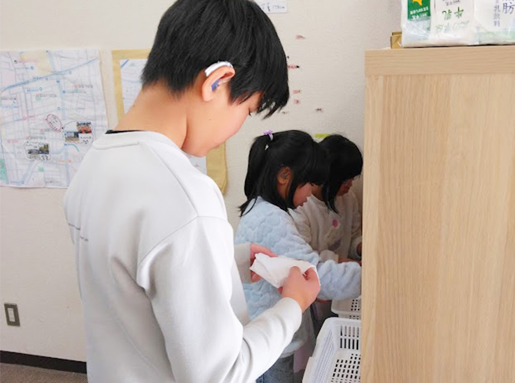 ブライトキッズの大掃除 2026年1月8日 最終更新日時 : 2026年1月8日 bright-sendaiイベント情報 仙台市太白区長町にあるブライト仙台では、年内最後の活動日となる12月29日に事業所の大掃除を行いました。 いつも使っているテーブルや棚、おもちゃ等をみんなで協力してお掃除しました! 部屋の隅の汚れも見逃さないブライトキッズたち☆彡 みんなの協力のおかげで、お部屋も気持ちもすっきりと整い、清々しい気持ちで新年を迎えることができました!